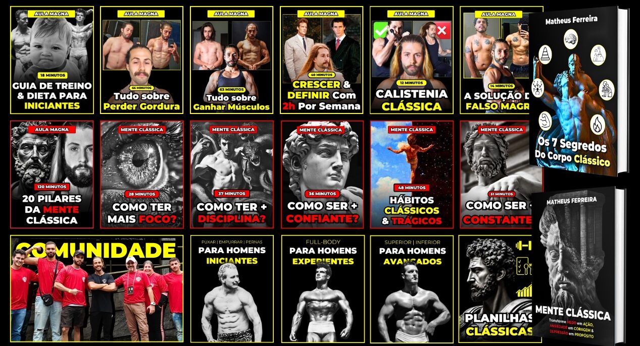 A masterclass mais completa para perder gordura da barriga, ganhar músculos no tamanho grego & construir uma mente clássica com disciplina, confiança e foco.