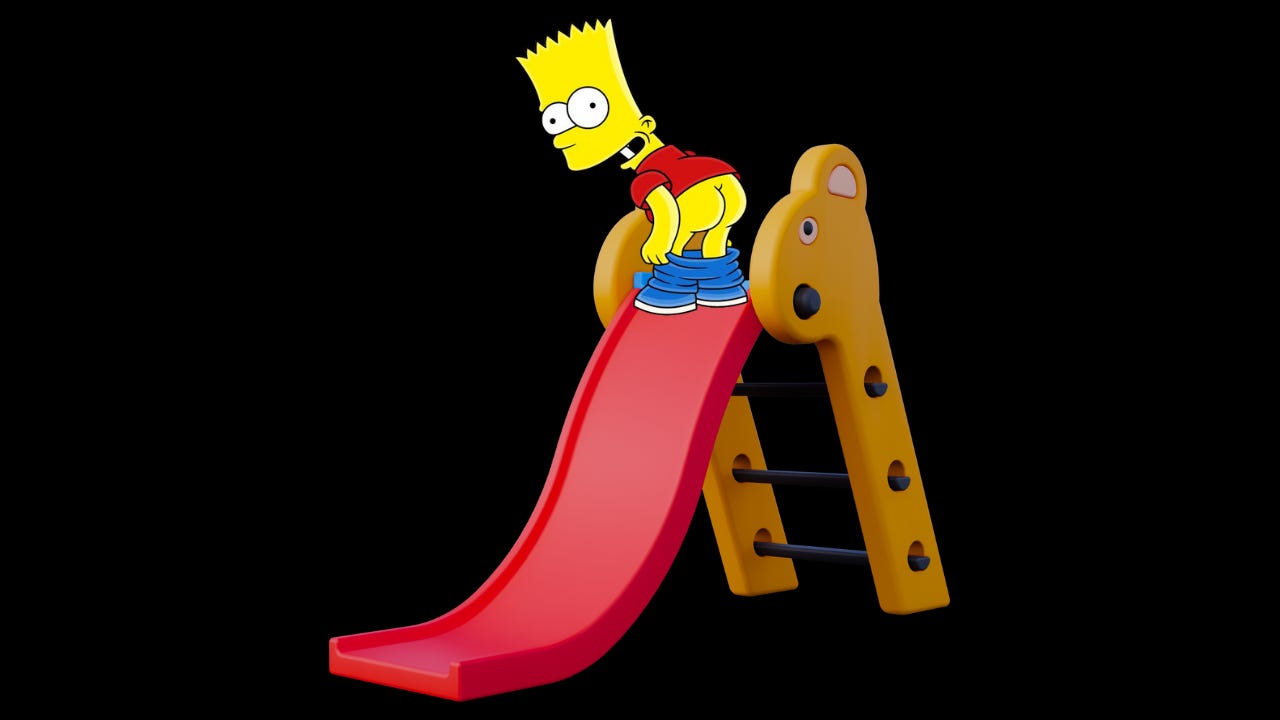 Mesmo assim, a criança escolhe descer o escorregador de pé.